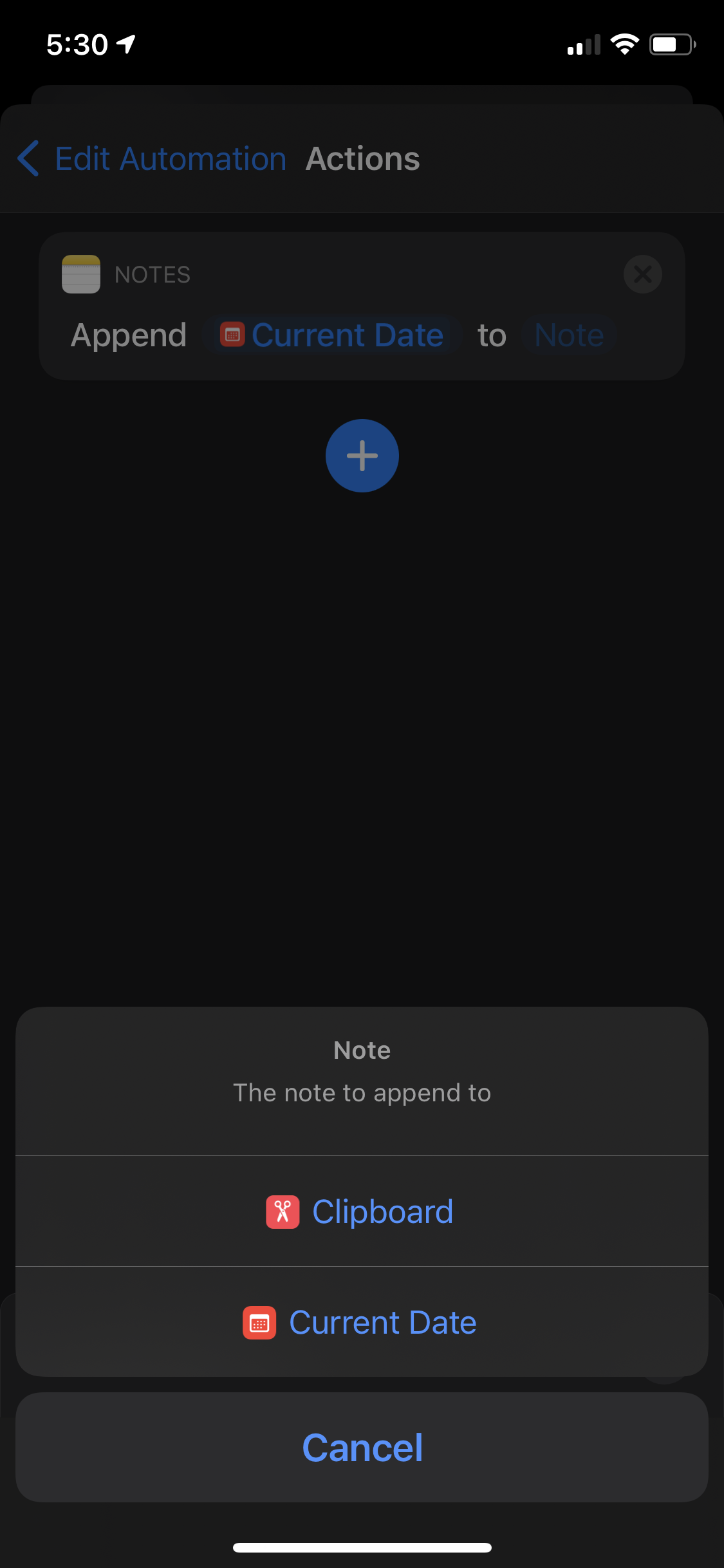Is this correct, or should I be able to search my notes in the append automation shortcut on iOS?