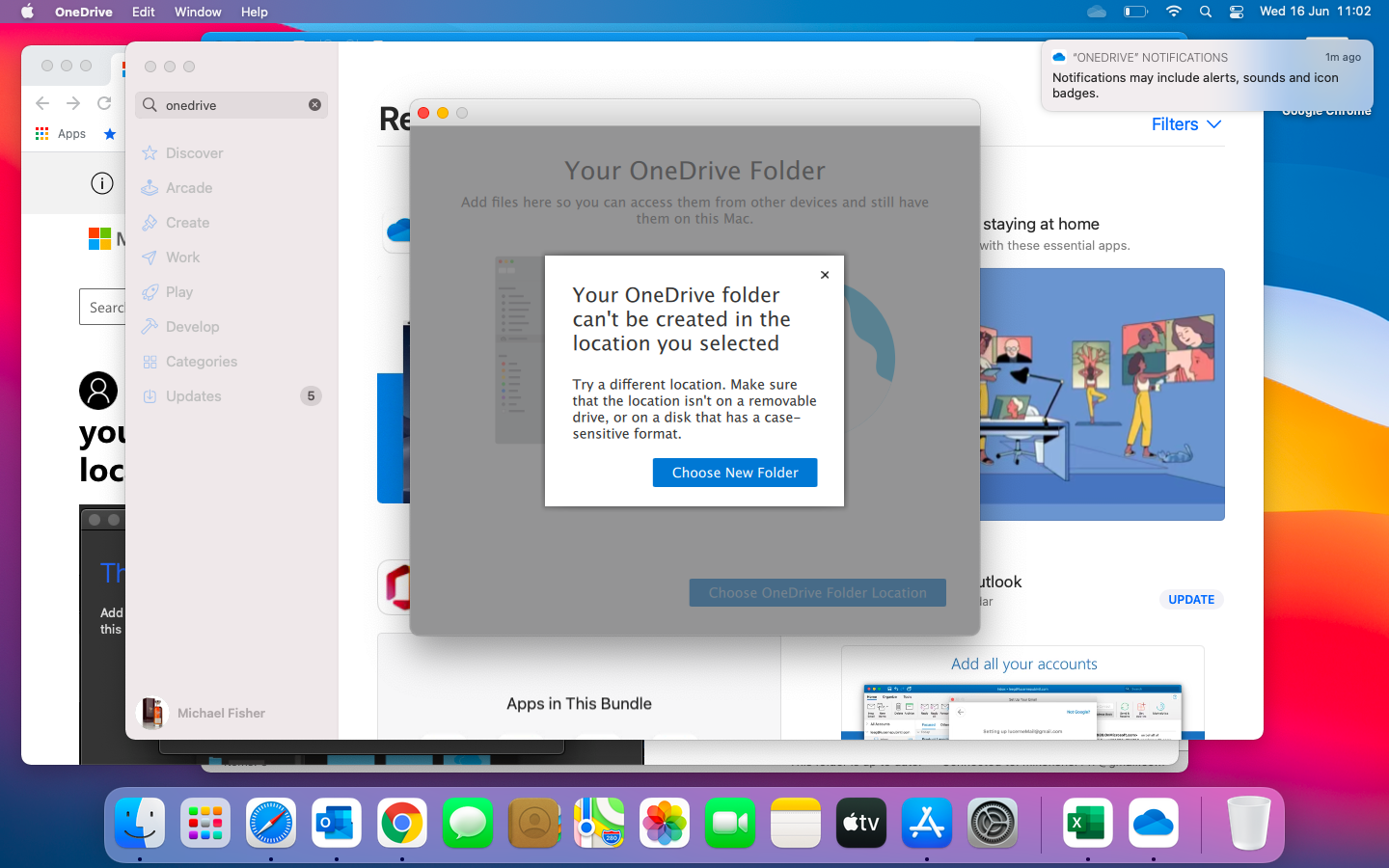 i'm trying to install Onedrive onto my Mac Book Air (early 2017) and i keep getting the following message, no matter what location i choose it come up with the same message - any ideas how to resolve this?