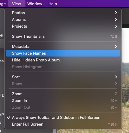 I named individual people in a pic in Photo, but when I export it their names do not appear when I move the cursor over their face. Is there a way to do this?
