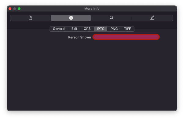 It is embedded in the IPTC metadata, and can be viewed in the inspector in preview app. (hidden by red bar in screenshot)