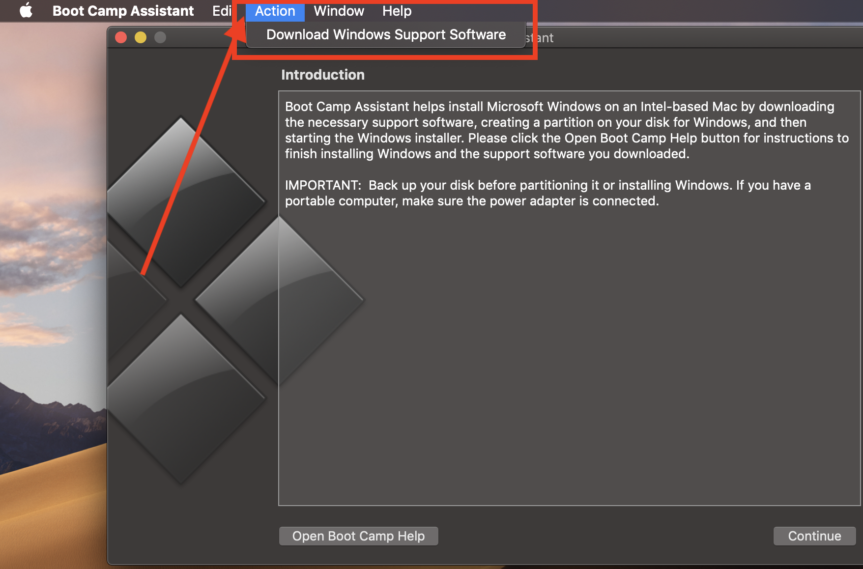 - Or is there a way to get the Boot Camp Assistant to leave the existing partition alone and store the drivers somewhere I can copy them to my working Windows installation?