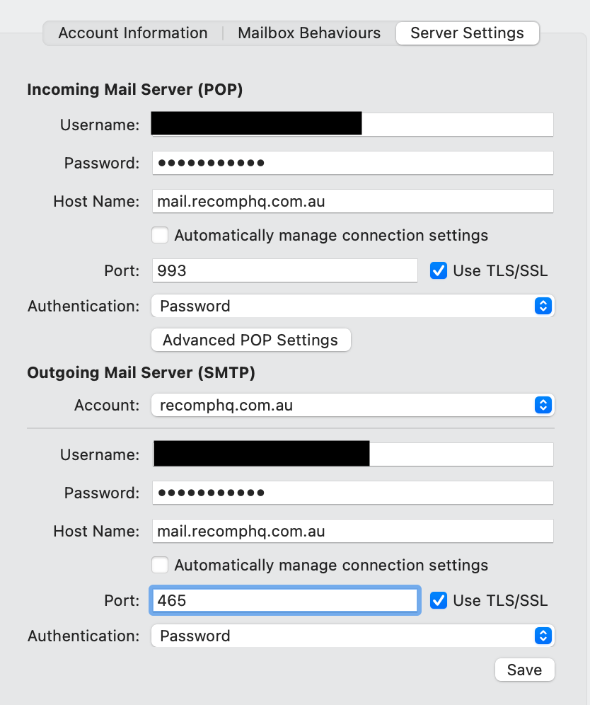 It doesn't work when logged in with a different user account. It also fails to set up in another mail app called Spark. I will have to figure out something else because it is not obviously a Mac issue, more likely the computer isn't pointing to the new server and somewhere it is reverting to the old server. All the old details were very similar.