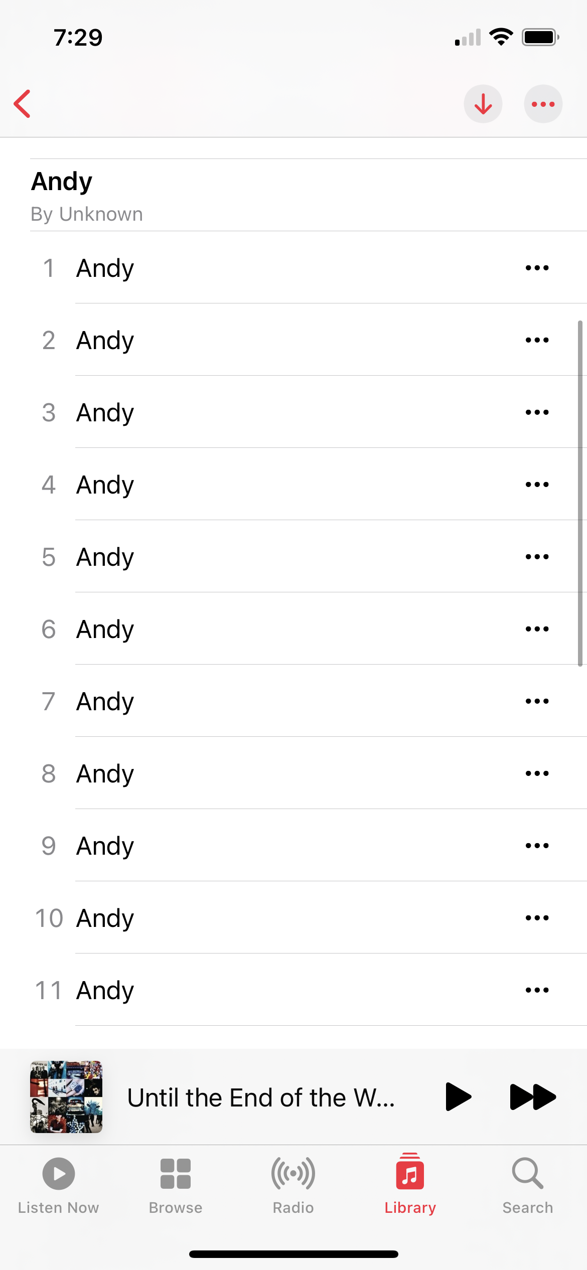When I look at that same album on my iPhone, the artist and album names are correct, but the track names just show my name: