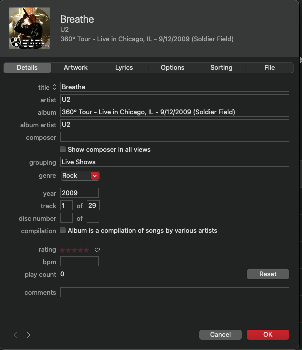 On my Mac, here's how one of those albums looks - it's music from a live U2 concert: