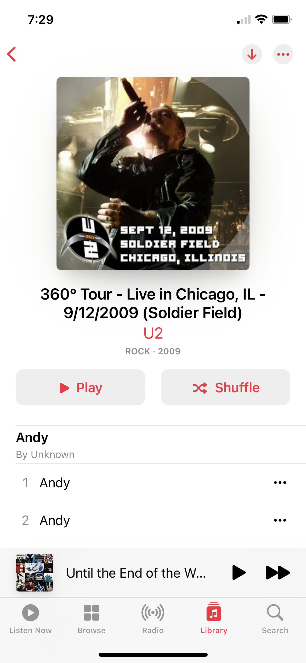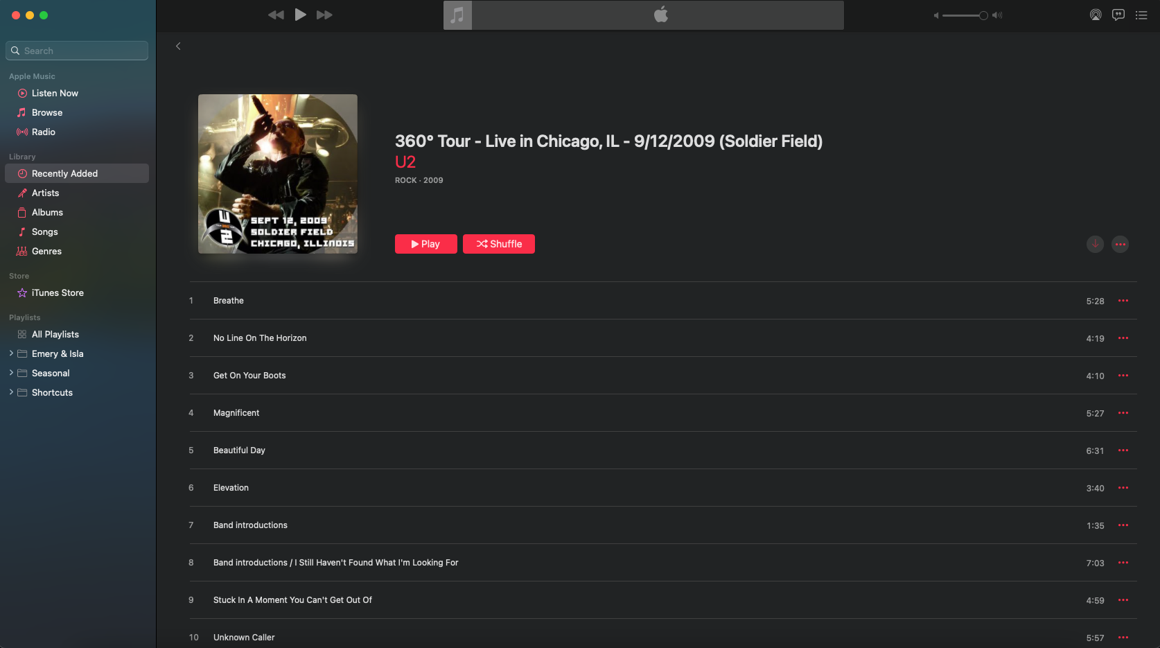 On my Mac, here's how one of those albums looks - it's music from a live U2 concert: