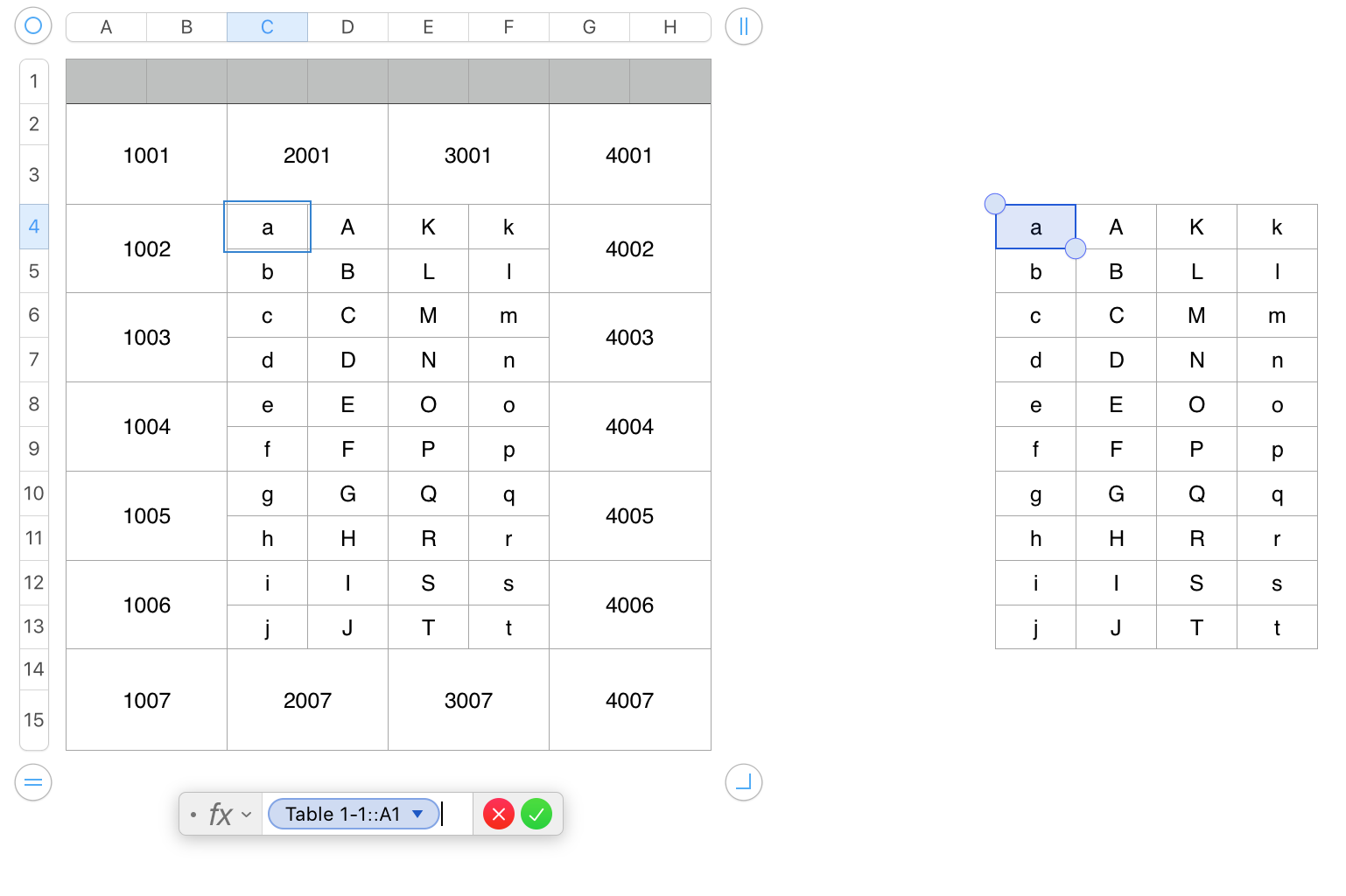 It is easy to set more than one table on a Sheet, and to move each table into a fixed position relative to the other tables on that sheet. Each table is independent of the others wrt content, formatting, location and resizing.