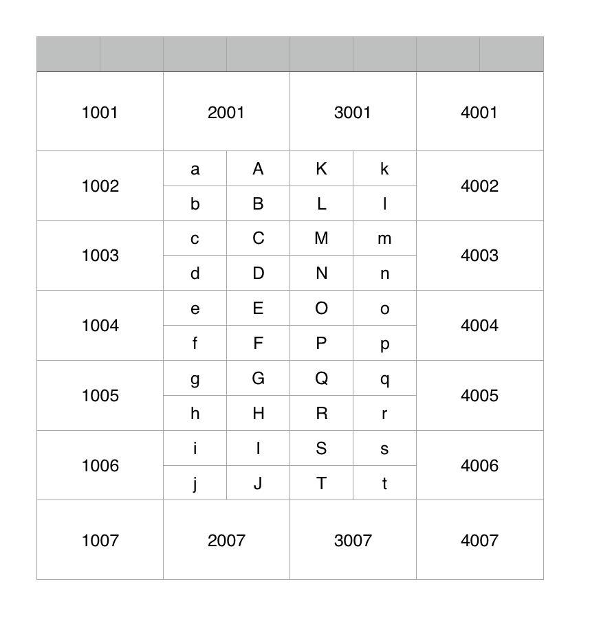 All of the cells that are part of the 'main table' are composed of four cells that haver bee merged into one cell.