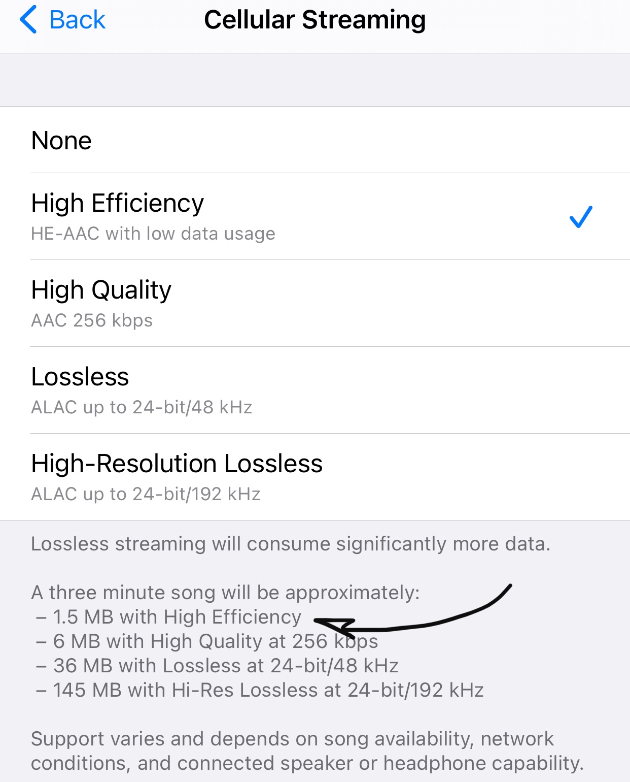 I’d like to stay with Apple Music, but it consumes so much data on cellular during steaming (carplay). I tested yesterday. Same songs, 30 minutes. Apple Music took 89MB, Spotify took just 9. It’s a brutally significant difference that forces me to stop using Apple Music. Why there’s no possibility for extra low quality like Spotify has? The strange is that iPhone says 1.5MB per 3 minute song for efficient streaming, but it’s far from reality. For me it was like 10MB per song. iOS 14.6.