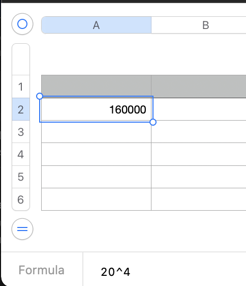 Type the formula 20^4 in the editor.