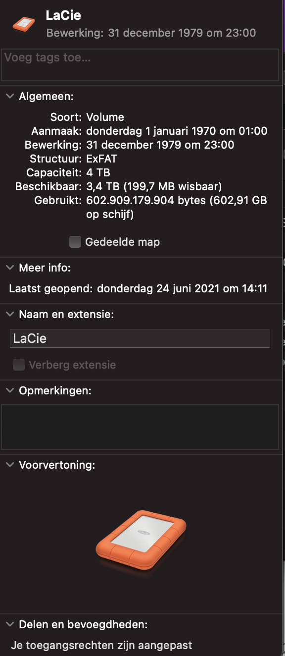 FCP didn't had full disk acces but now I gave the app full acces. But I still can't open the files on QT. The files are on an external drive, indeed. The drive is connected with a usb (see screenshot for more information).