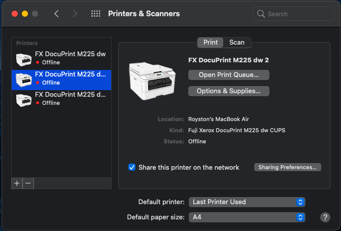 If you continue to have issues with the Fuji Xerox drivers, contact them for further support of their product.