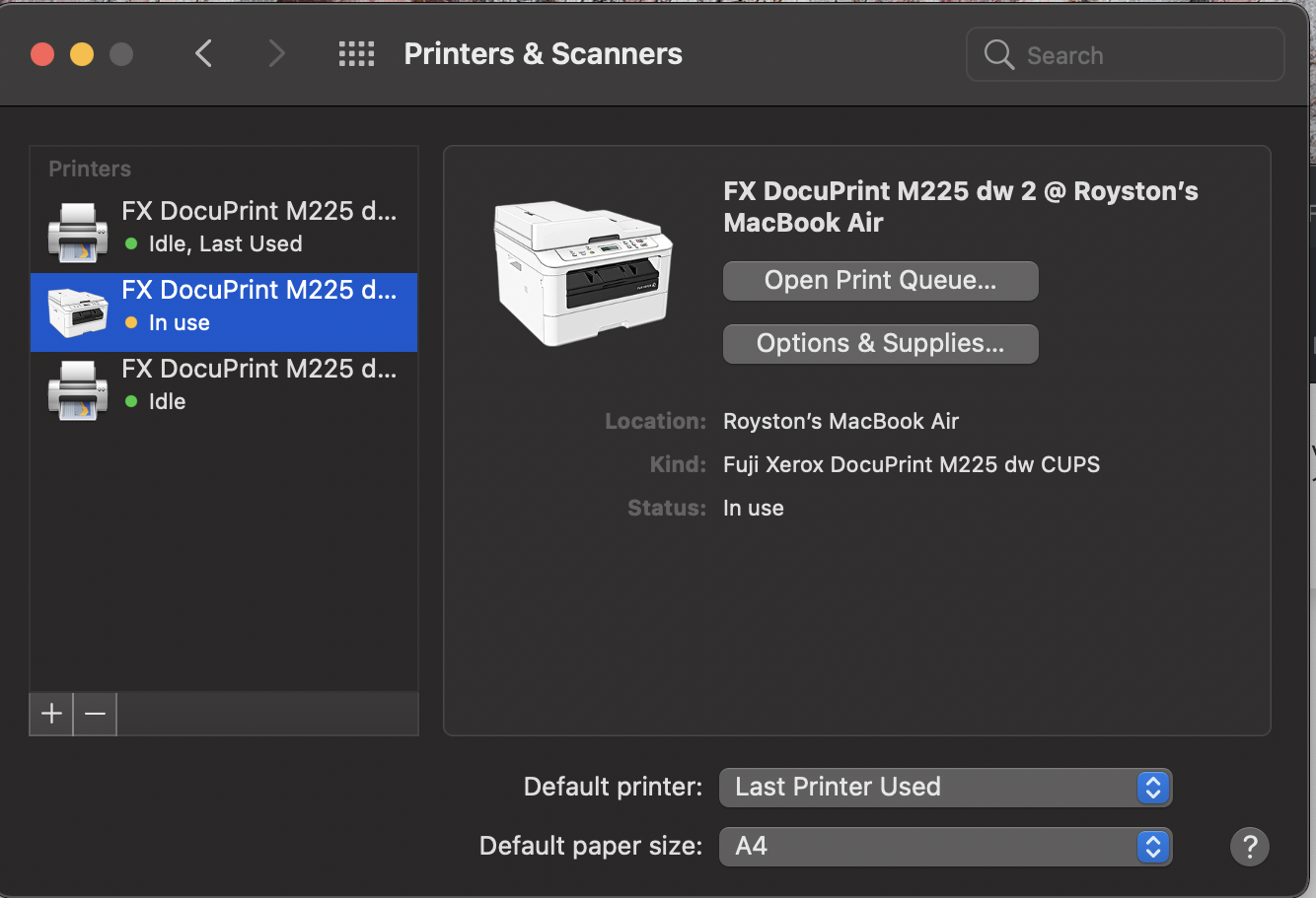 Once you had added the M225DW into the Printers & Scanners panel with Airprint, you would need to Reset the printing system (control-click on the M225DW entry, choose Reset printing system…) and re-add the device by specifying the newly installed Xerox drivers. That is the only way it would know about their presence.
