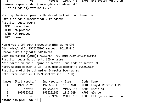 Disk identifier (GUID): 95315930-1791-4E79-9813-E7A9050E157C