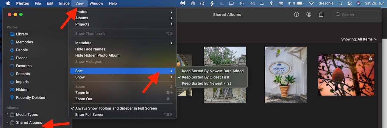 How to sort photos in shared albums by date?