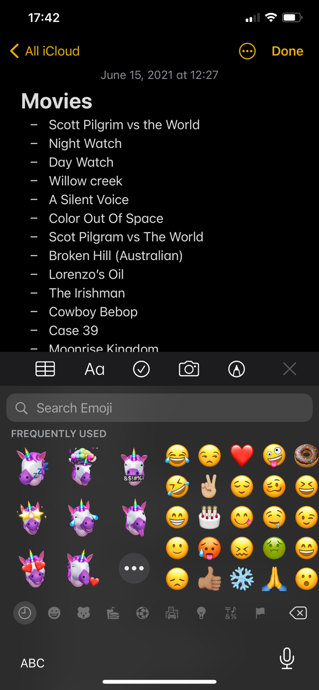 Several months ago I noticed that suddenly there are a bunch of fruity unicorns under the "Frequently Used" section of my emoji's. Never once have a used a unicorn, so I don't know why they're there.