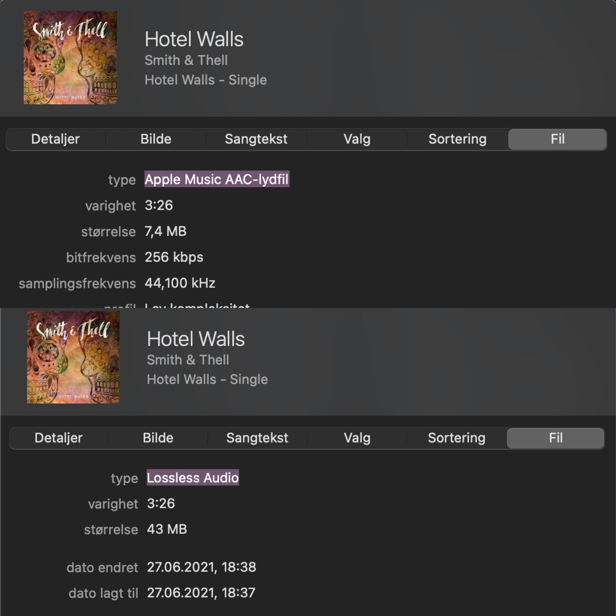 First I figured lossless only applied to newest songs, but songs from two years ago are lossless too. So I removed "Hotel walls" by Smith and Tell from two years back and downloaded it again. It didn't have lossless before I removed it, but has lossless after I downloaded it again... See attachment at the bottom...