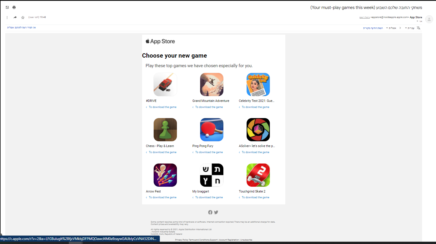 This mail message does look like the usual sort of Apple App Store advertising mailed out from Apple when the user doesn’t have their Apple advertising messages settings disabled. Disable and uncheck your Apple advertising preferences, and it’ll go away.