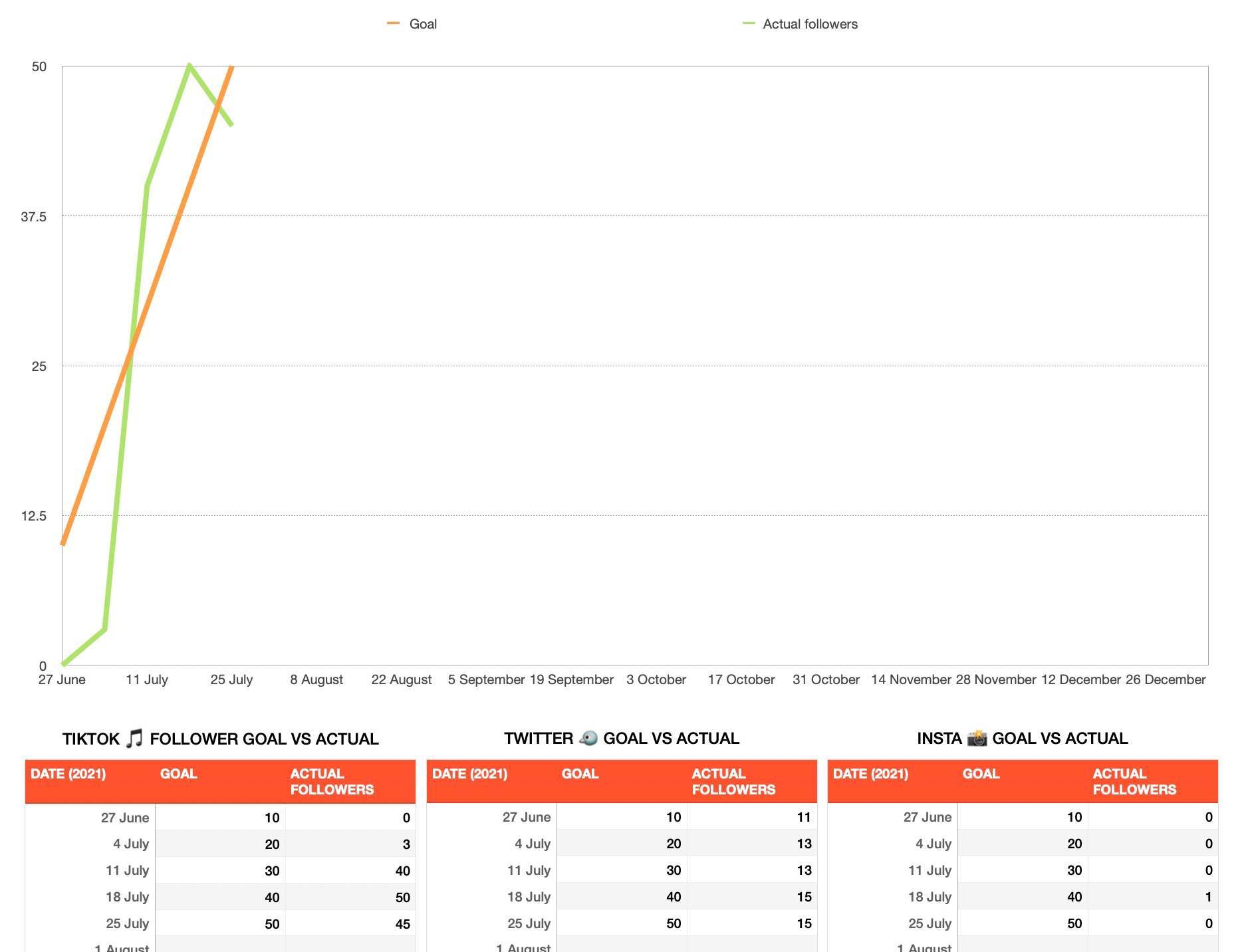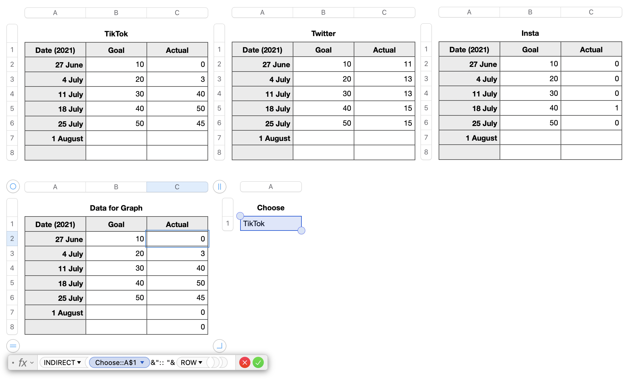 I like this current setup of the chart above the tables (pic attached) but I can't find out how to make the chart interactive? what I mean by that is I'm trying to make it so that when I click the arrows (like on an interactive chart), only the lines change to reflect the different social media type (Tiktok, Twitter, Insta).