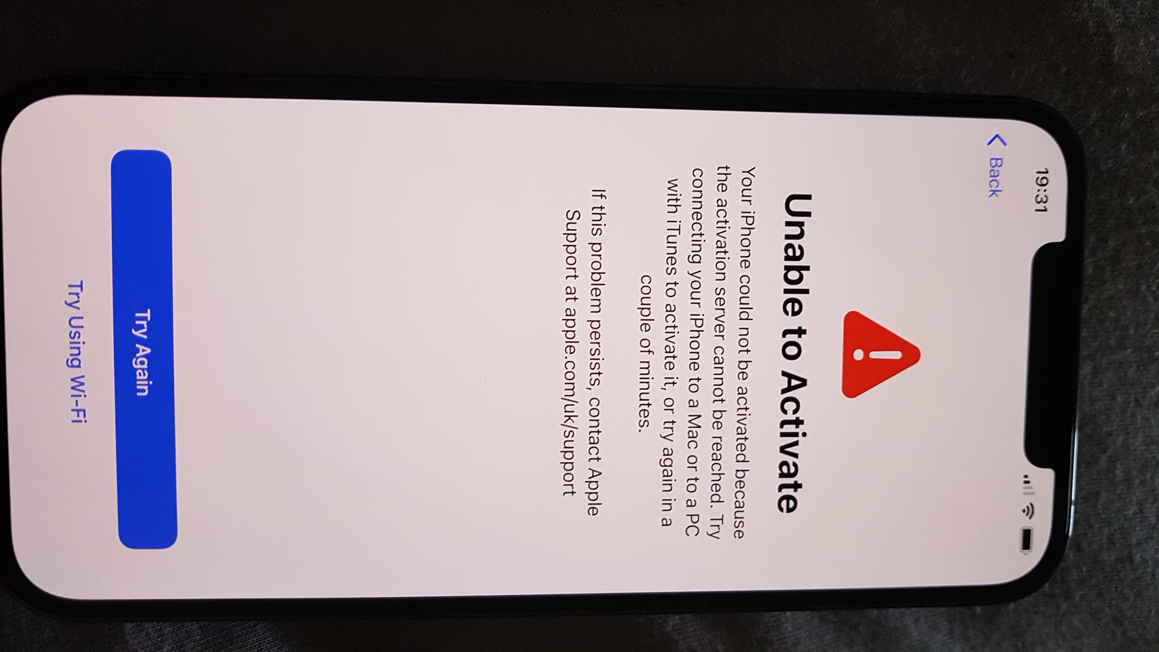The message tells you exactly what to do. If it fails to activate and you don’t have a computer, contact Apple support for help.