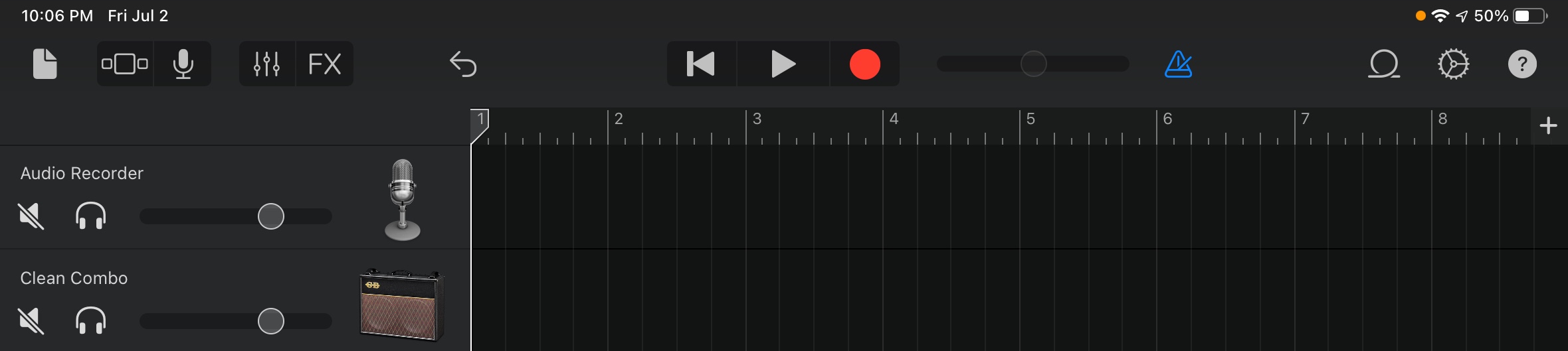 Record and Monitor Icon Not Displaying in IPAD Garageband