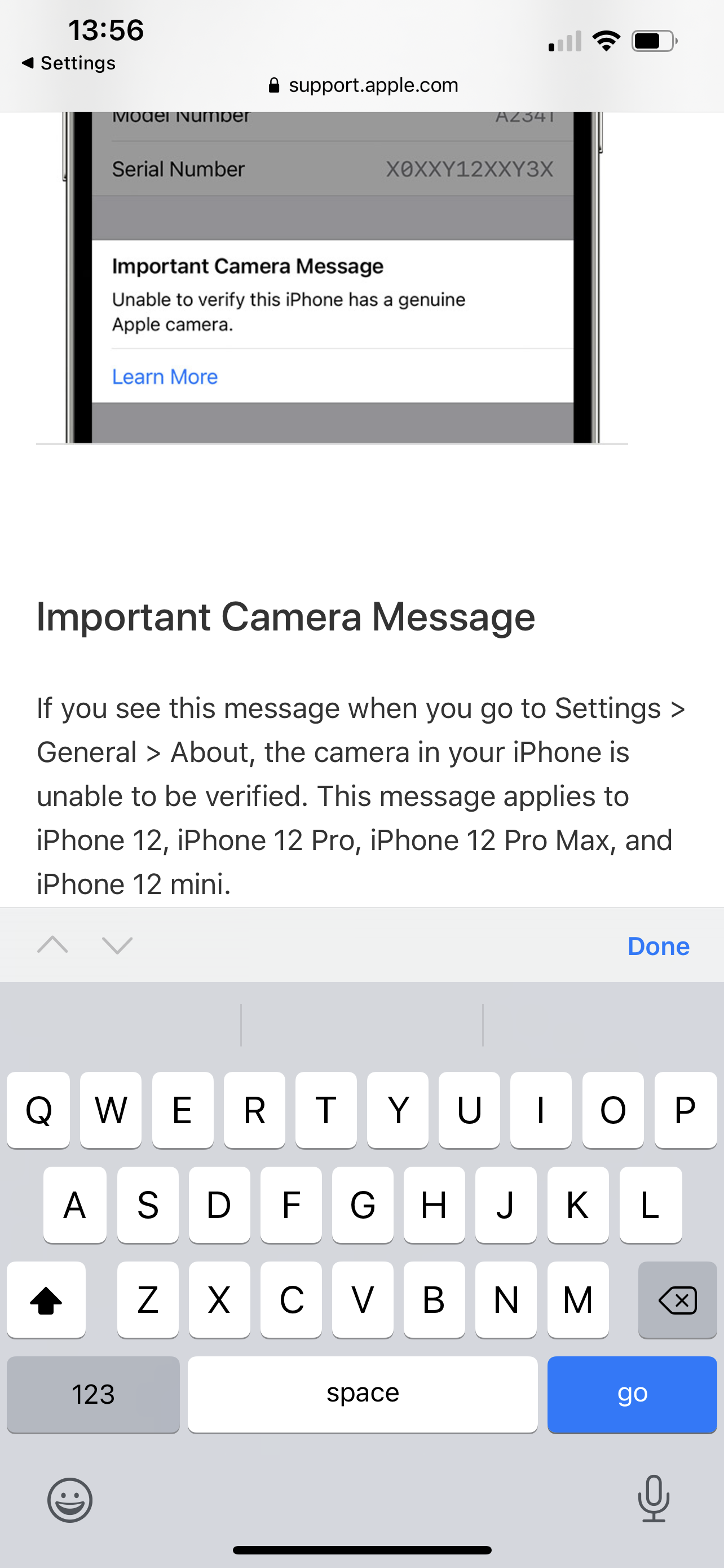 Why is my phone displaying unable to verify this iPhone has a genuine camera
