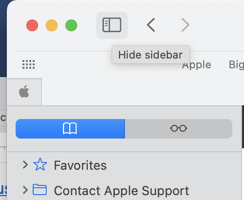 Safari left sidebar - remove