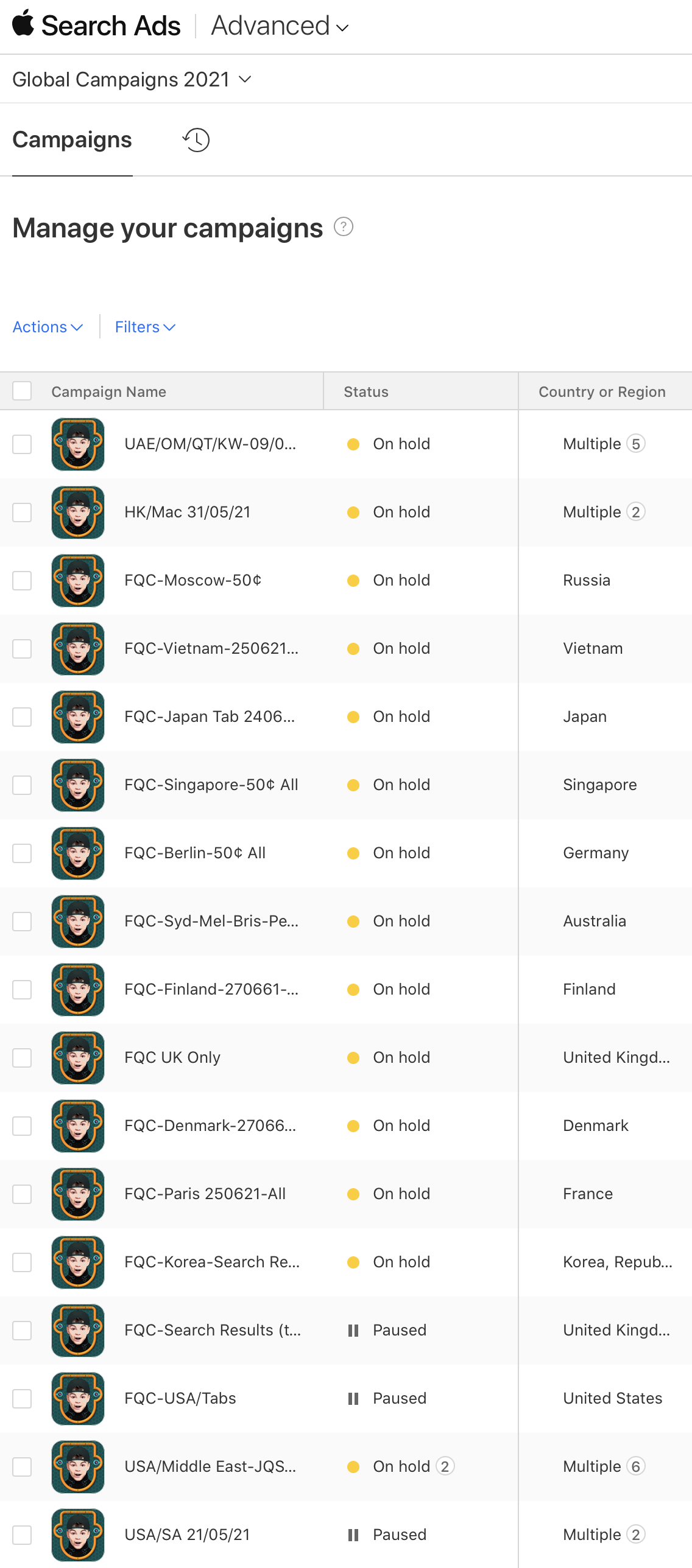 Hi, All my Apple Search Ads campaign are 'On-Hold' all at the same