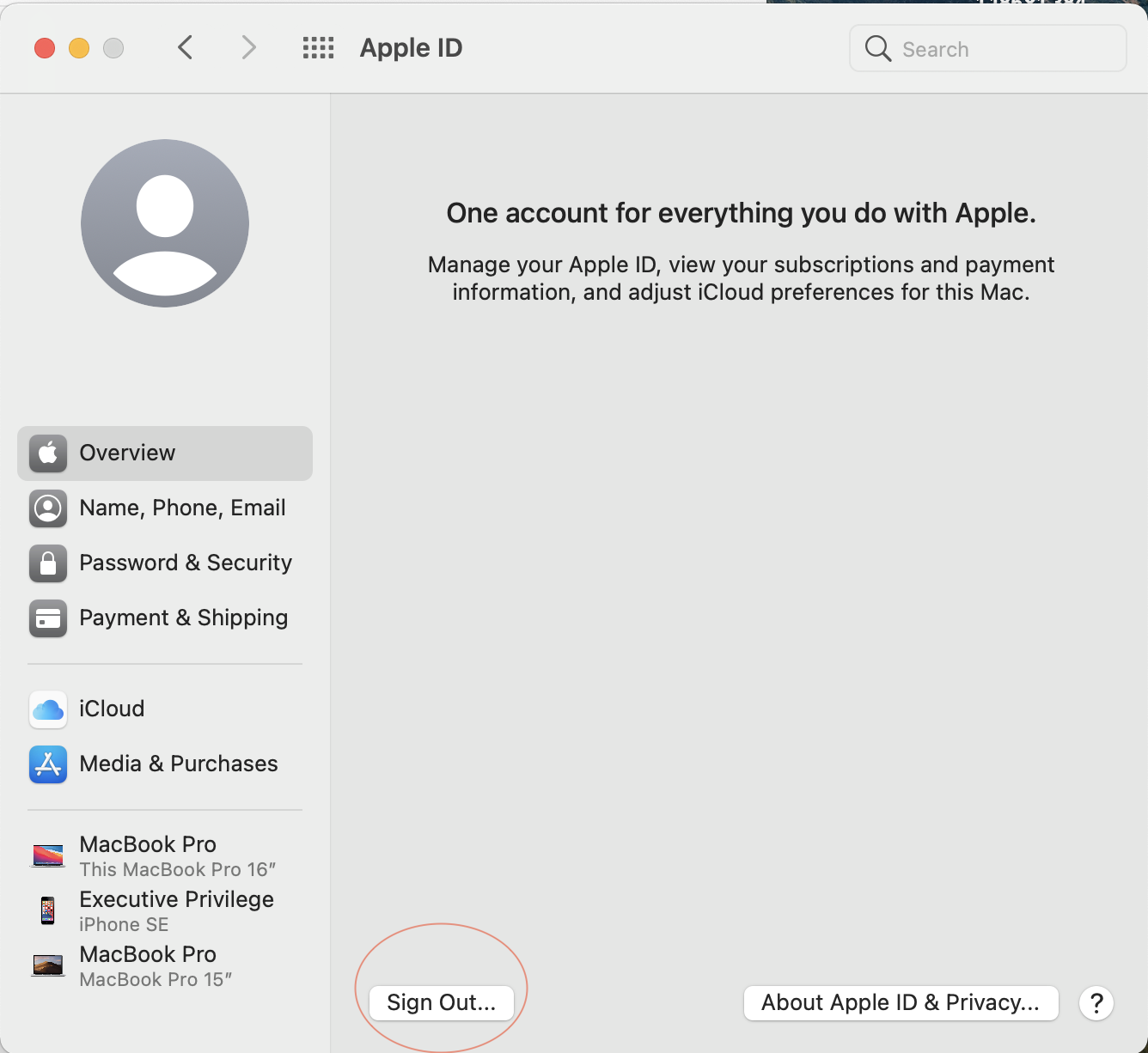 I m not able to sign out my Apple ID on my Mac, its grayed and I've pressed it a lot too....I've tried restarting it several times but none of them is working....kindly tell me a solution to solve this issue.