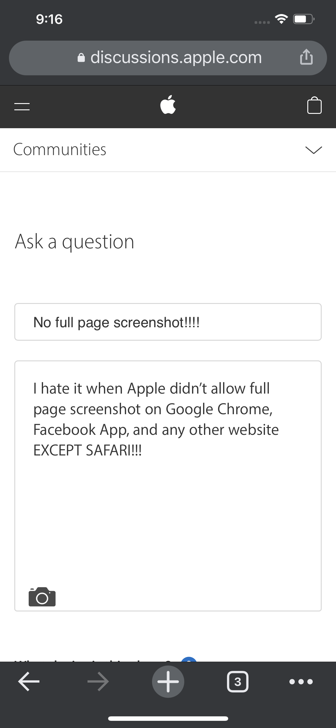 Why does android can allow full page screenshot on any websites and apps, but not Apple? There are so much restriction when I move from Android to iPhone.