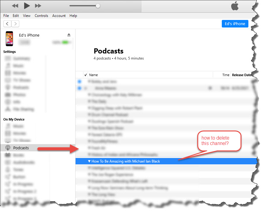 The section in the screenshot is showing content currently on your iPhone that was synced from your computer. You can use the Podcasts app directly on your iPhone to manage which podcasts appear. Here's a guide to help: