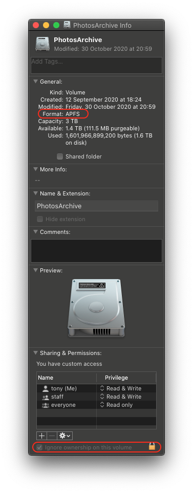 Regarding the external drive - is it correctly formatted for a photos library?