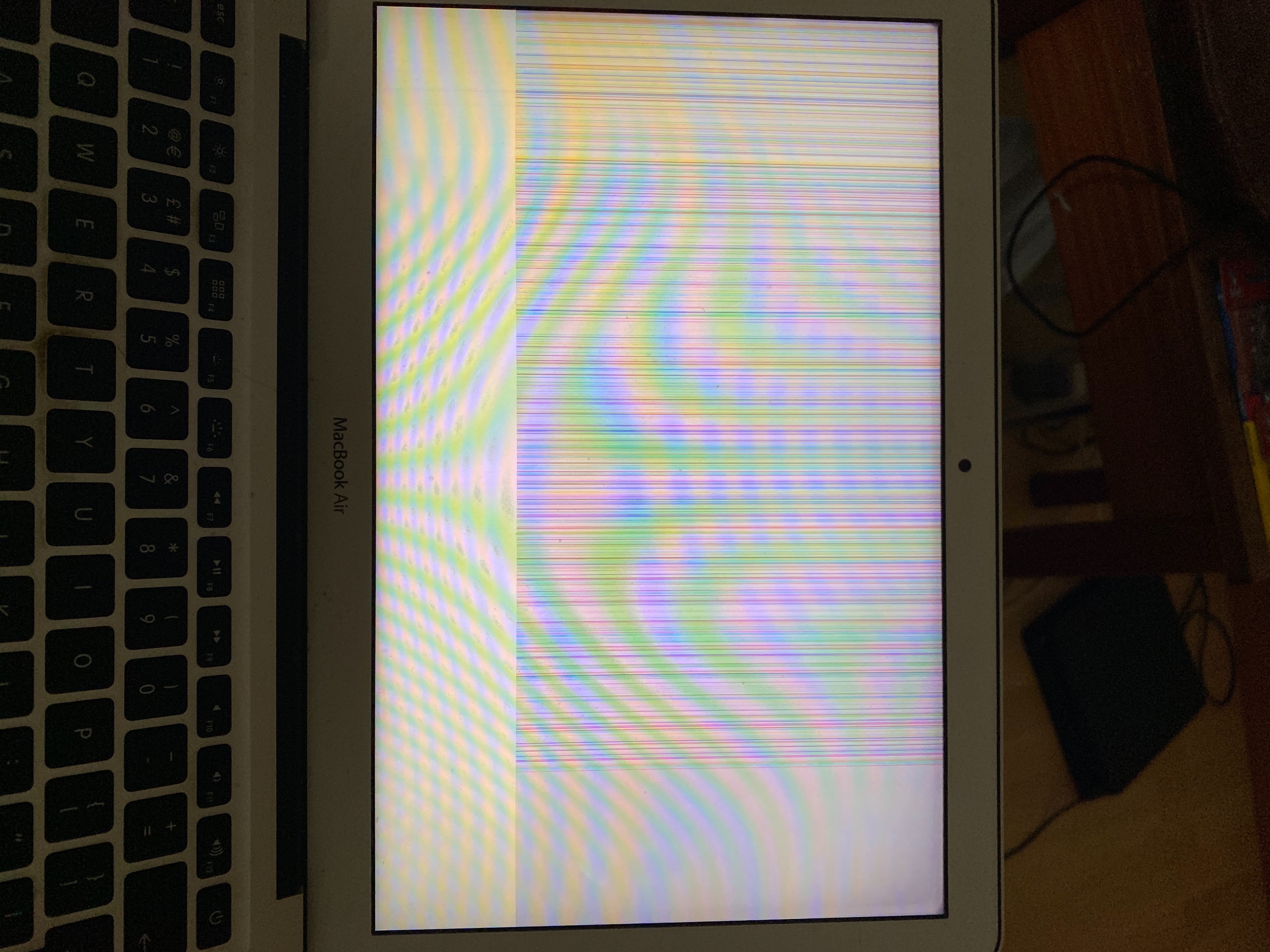 i haven’t touched my MacBook Air in a couple of days, but went to use it and I get a white fuzzy screen which then turns into a pinkish screen.