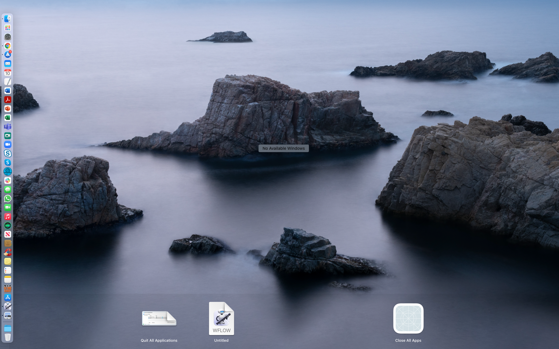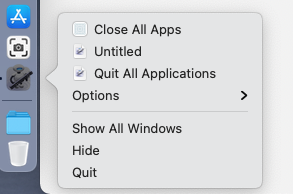 Hi Luis. Thank you for your contribution. Left or right-clicking on the 'Untitled' workflow as seen in the second screenshot doesn't result in anything happening, I'm afraid, which was one reason why I sought assistance here. I though, if it opens, then surely I'll be able to find it in Finder /Applications. But no, neither it nor the 'Close all Apps' workflows shown in the screenshot do anything when clicked. The only Workflows in Finder /Applications are the ones that currently do something, namely: 'Quit all Applications' and another one I subsequently made called 'Quit Apps Not Chrome or Mail' (leaves those two apps open).