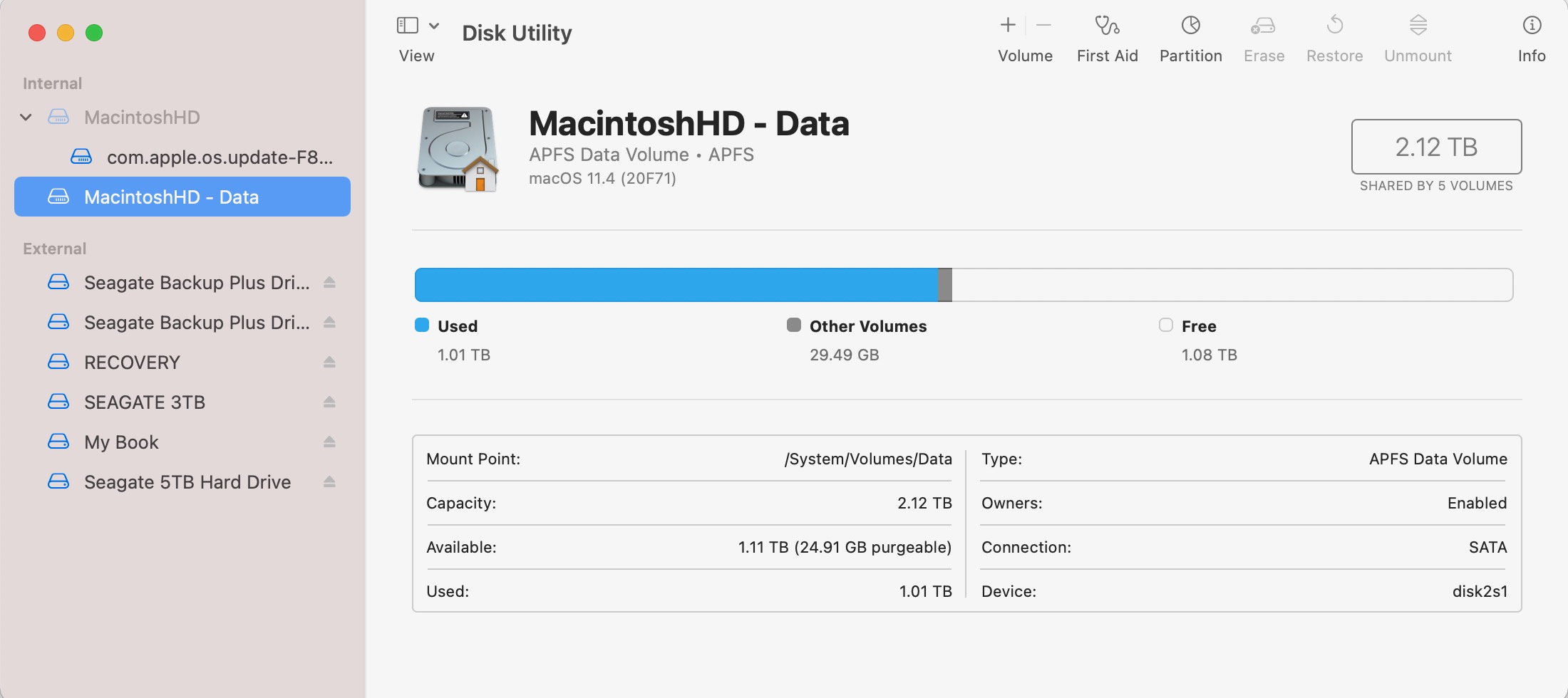 What are you using the Seagate drive for? I've noticed that you have Seagate software installed. Did this come with a Seagate drive and is for managing the drive under normal usage. If so it's totally unnecessary and should be removed. The system does not need any additional 3rd party software to manage external HDs as long as those drives are formatted either OS X Extended (journaled) or APFS depending on the type of drive it is.
