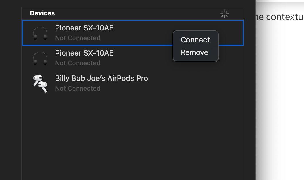 I can't rename a bluetooth device using BigSur 11.2.3 on MacBook pro. I can rename the same device on my iPhone(6). So why not on my Mac? The problem is that i have identical stereo systems in two different locations, so I'm always trying to pair with the wrong one, as the name appears identical in the bluetooth menu. when I click on the device, i only get the option to remove it or cancel.