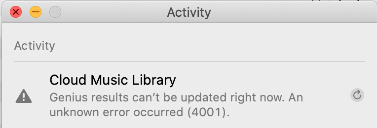 @josh156: As mentioned in the "Can't upload songs to library for iTunes matching" discussion, I'm running the latest possible macOS and Apple Music on my early 2013 MacBook Pro (i.e., Catalina Version 10.15.7 with Music Version 1.0.6.10). Like I said there, I'm having the same problem. My Library consists of 12,999 tracks mostly in the Apple Lossless format. My current problem involves a classical CD with 12 tracks. I found the tracks in the iTunes Store so, in theory, all should have been matched. After a considerable delay, 7 were matched but the remaining 5 have defied all my efforts to get it to work. Over 24 hours ago, I just left the process running and ended up with "An error occurred". Here is a screenshot of the relevant part of the Activity window:
