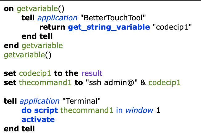 set codec1win to do script "ssh " & theUsername & "@" & theHostname