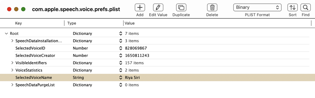 Interestingly, checking the Preference file after restart, it still had my preferred voice listed even though System Prefs had changed back to Alex.