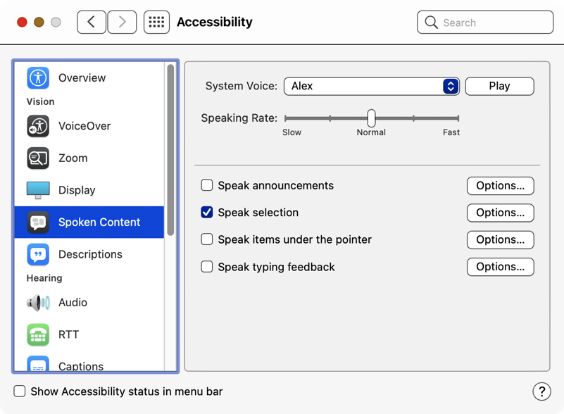 Every time I go to Accessibility Settings and have even deleted and de selected all they voices that aren't the better sounding versions of Male and Female Siri, I will select siri, which will work for a while then somehow switch back to the annoying and ugly sounding Alex voice, which I thought to have de selected and deleted.