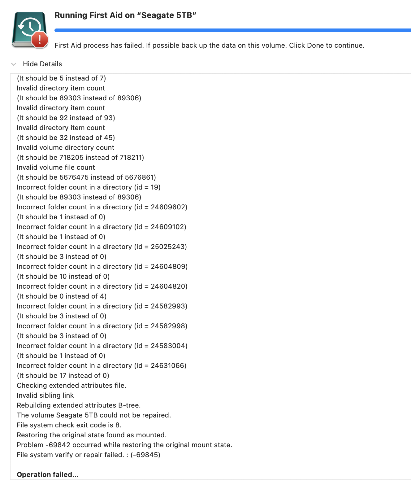 Screenshot of Seagate drive info attached. Suggestions? Many thanks.