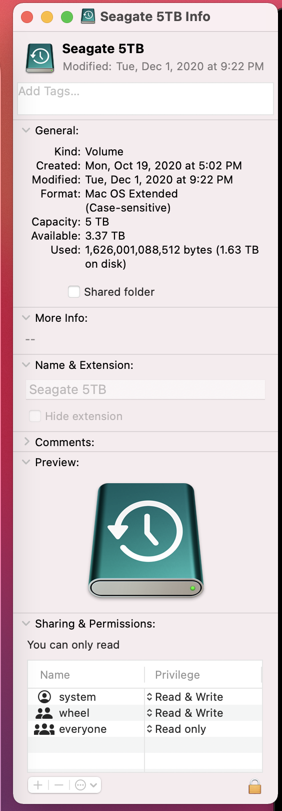 Need help with Time Machine backups to Seagate 5TB external drive