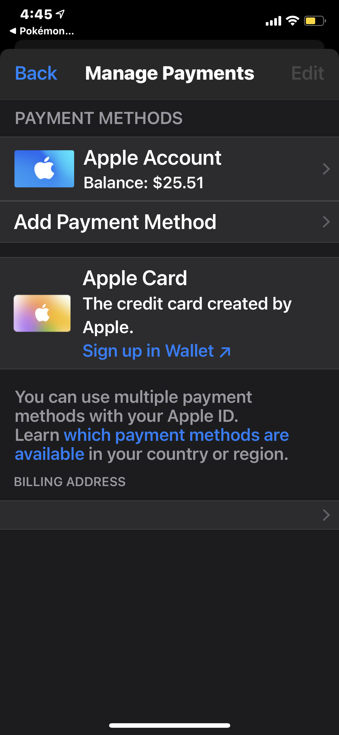 I’m having an issue selecting my payment option I’ve always used itunes cards and now it’s not letting me choose that option for in app purchases Please, I need anyone’s advice I obviously have enough money on it for a $4.99 purchase