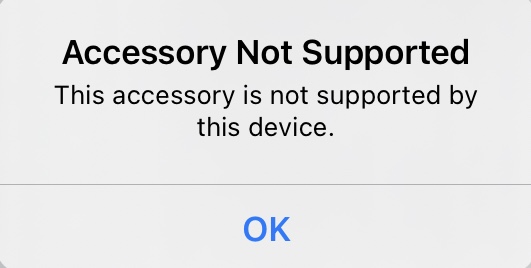 See >>> If you see an ‘Accessory may not be supported’ alert - Apple Support