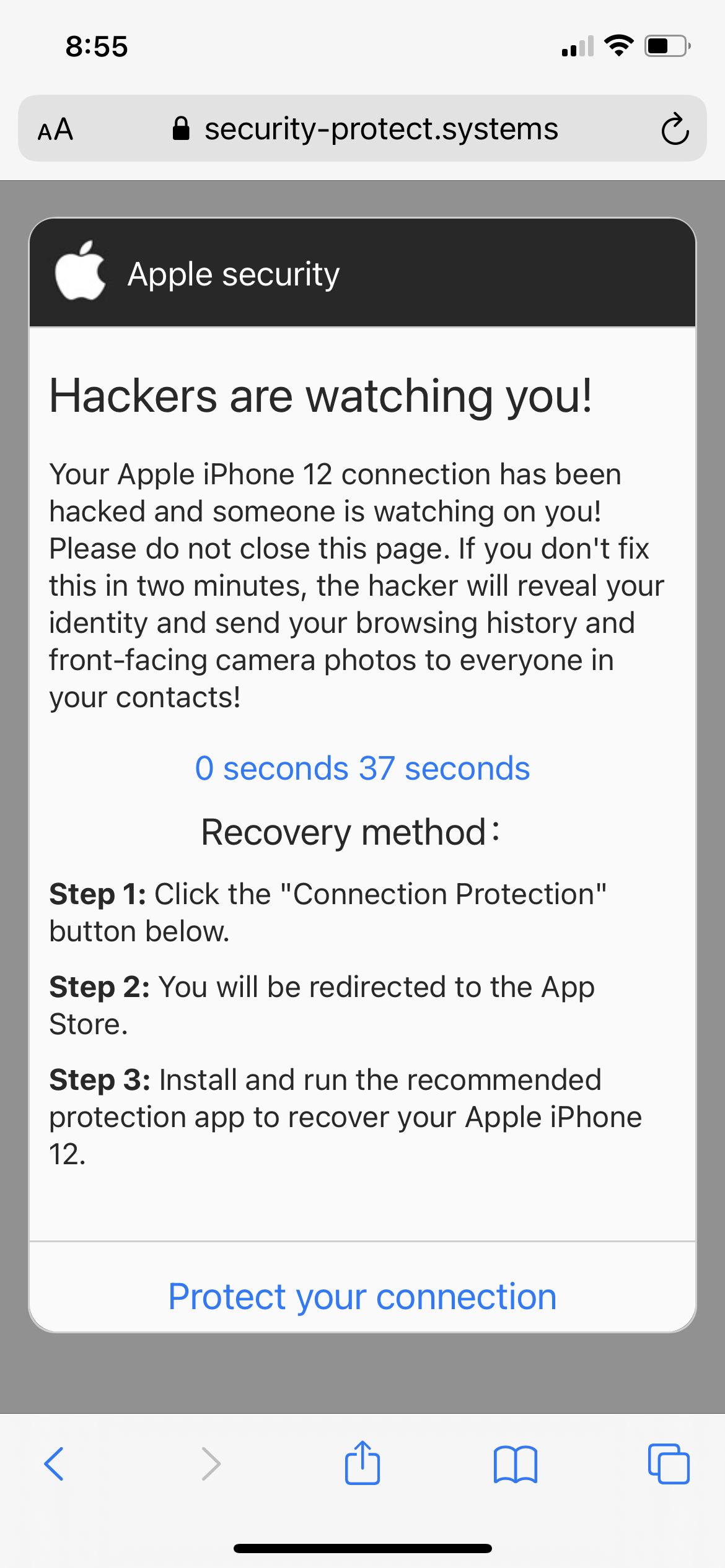 i got a very suspicious message pop up claiming it is apple security and it wants me to download an app or else my identity and front facing photos will be sent to my contacts