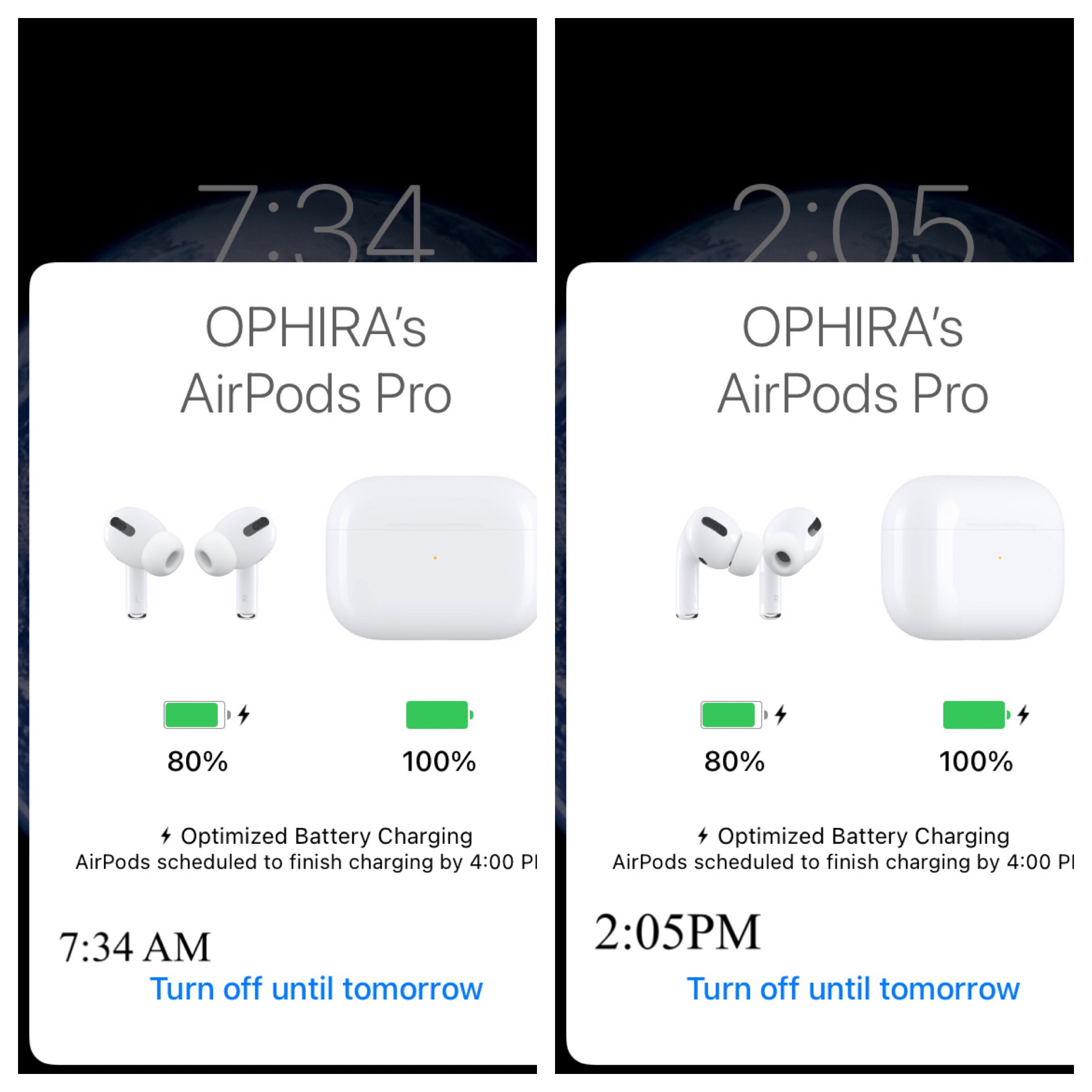 Thanks Deggie. I am not sure the answer is correct. The attached shows my iPhone screen at 7:34 am and almost 5 hours later when the AirPods Pro where connected to Apple original adapter with the cable which came with the AirPods about 6 months ago. During this time the Bluetooth on my iPhone was on. At about 2:30 pm I turned the Bluetooth off and the AirPods charged to 100% in less than half an hour. Any idea?