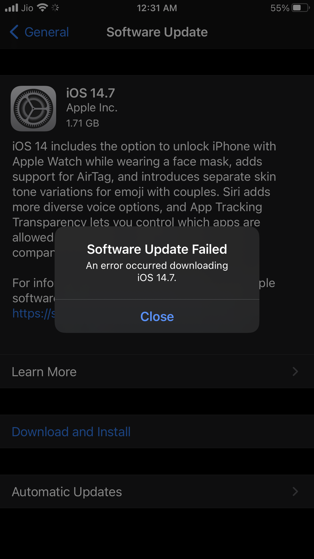 Tried installing iOS 14.7 thrice on different days.. it consumes data upto 1.7 to 1.8 Gn every time and after few minutes throws error. “Software Update Failed. An error occurred downloading iOS14.7”