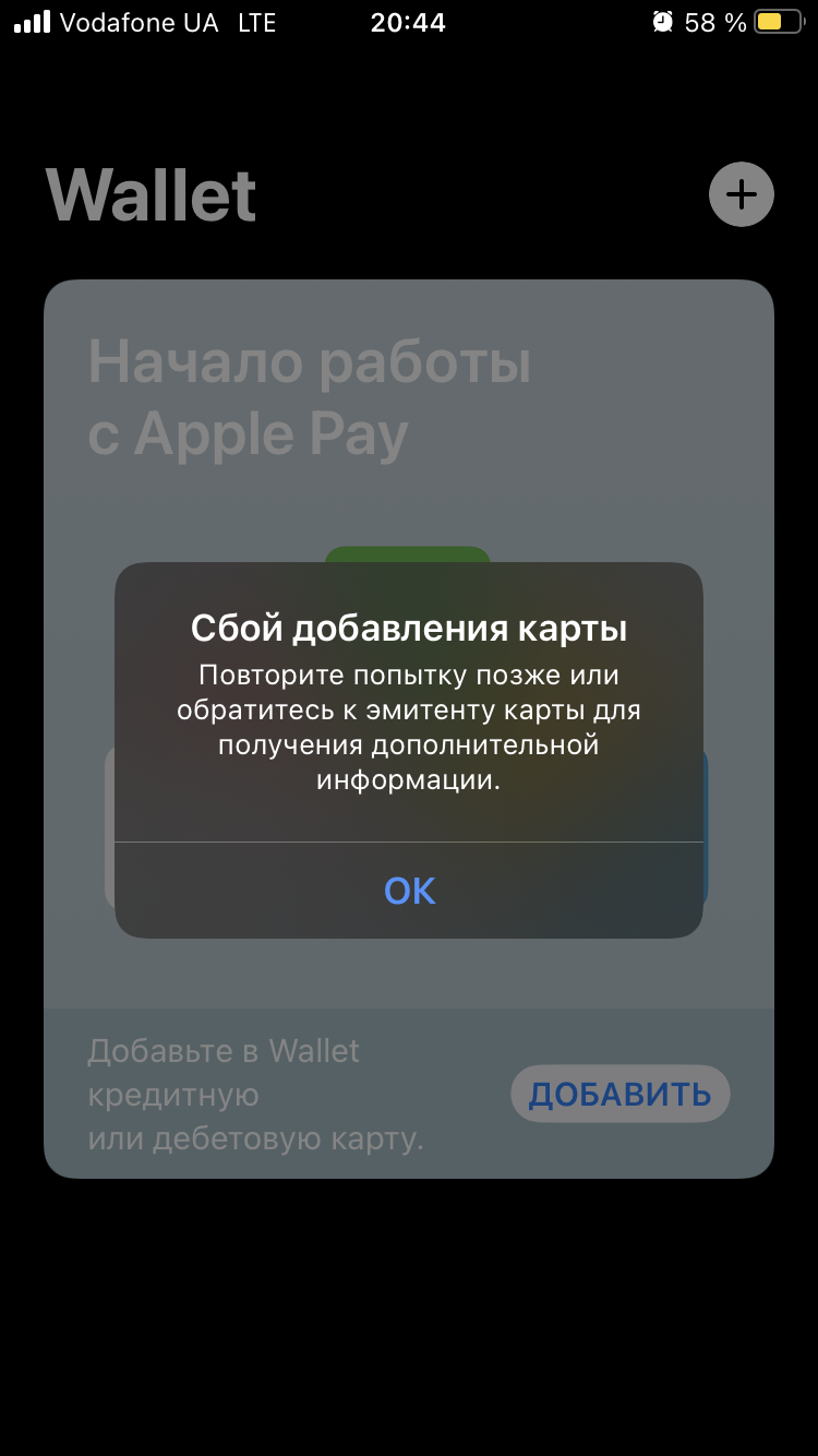 Hi! I have a problem with adding my bank card in wallet for using apple pay. On my Mac Book this card is successfully added, but on phone appears error