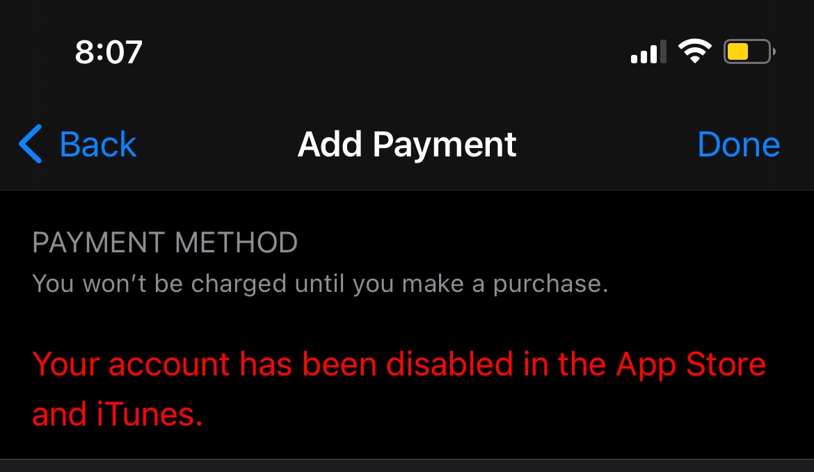 Why does it say my account has been disabled in apple store and itunes