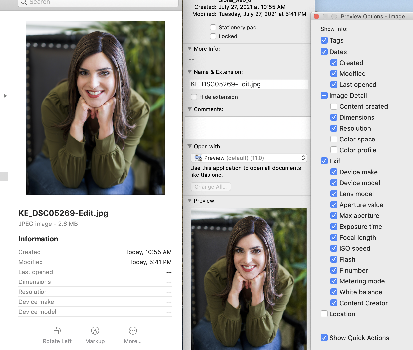 Catalina won't display "more info" on JPG images (external drive)