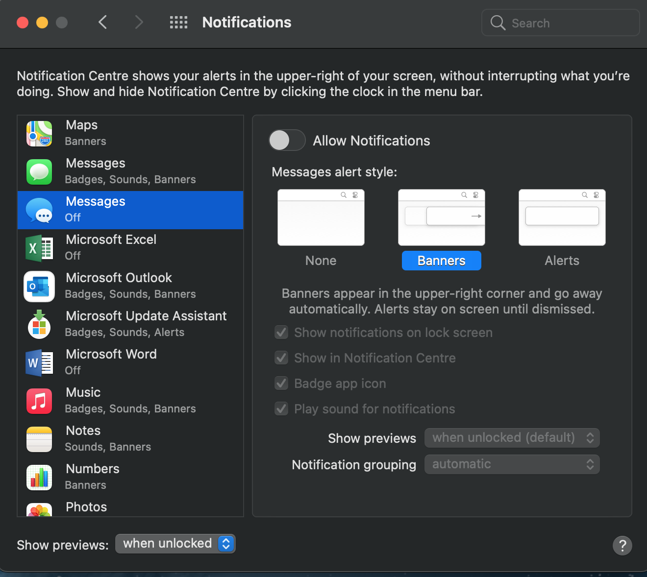 So my question is: how do I remove this old version Messages' notification setting? (noting that app seems to be already removed at some point in the past MacOS update? I assume this was when the new green version was introduced)